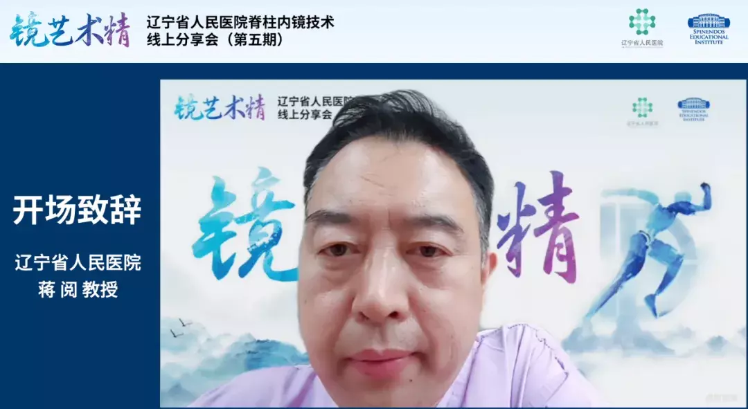 遼甯省人(rén)民(mín)醫(yī)院蔣閱教授為(wèi)本次會(huì)議(yì)做(zuò)α開(kāi)場(chǎng)緻辭。鏡藝術(shù)精-遼甯省人(rén)民(mín)醫(yī)院脊柱內(nèi)鏡技 (jì)術(shù)線上(shàng)分(fēn)享會(huì)已舉辦到(dào)第五期,感謝(xiè)省內(nèi)外(wài)的(de)專家(j₩iā)一(yī)直以來(lái)的(de)支持。本期會(huì)議(yì)邀請(qǐng)國(guó)內(nèi)衆多(duō)知(zhī)名脊柱微(wēi)創領≈域專家(jiā)進行(xíng)授課,分(fēn)享研究成果,交流學術(shù)經驗,相(xiàng)信本期會(huì)議(yì)一(yī)定會(hu•ì)取得(de)積極的(de)學術(shù)效應。希望與衆多(duō)醫(yī)師(shī)同道(dào)取長(cháng)補短(duǎn),切磋交流,共同進步,造福于更多(duō)病患。